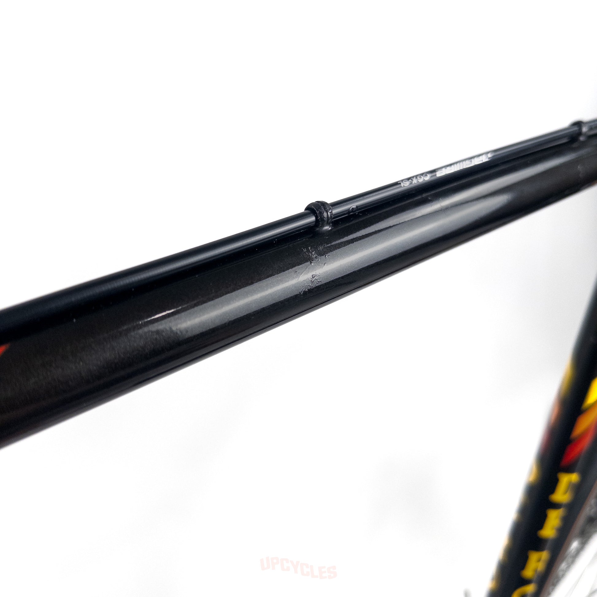 - There is minor corrosion on the top tube near the braze-on cable guides and some paint wear on the top tube due to contact with the brake cable.