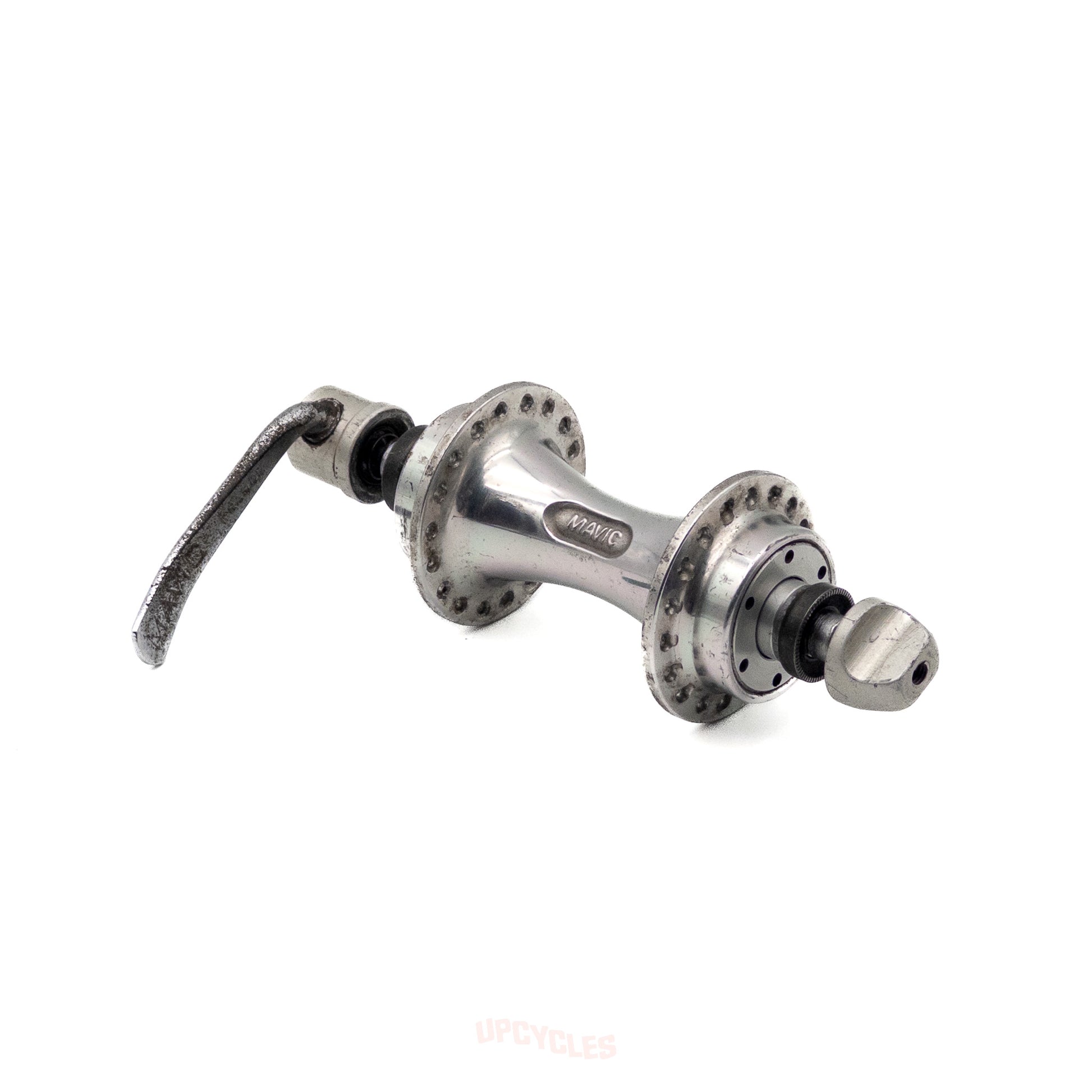Unleash the potential of your vintage bike with the Mavic 550 RD front hub from France. Featuring a durable aluminum construction and 36 hole, 100mm OLD specs, this hub is the perfect choice for your 1970s, 1980s, or 1990s era bike. Upgrade your cycling experience today with this buttery smooth silver hub. Good condition with original alloy quick release skewer.