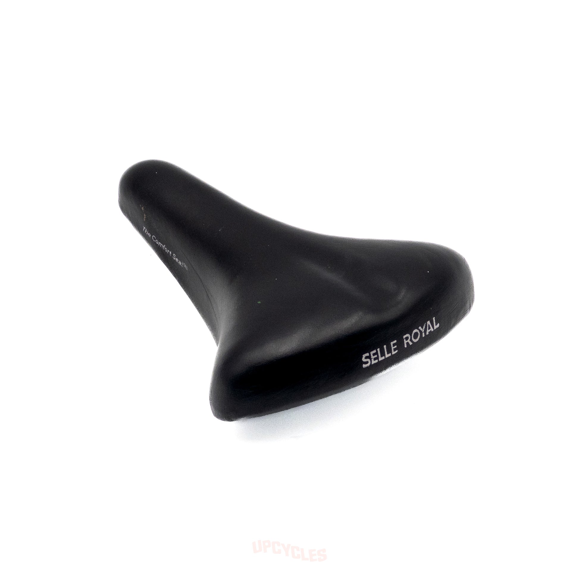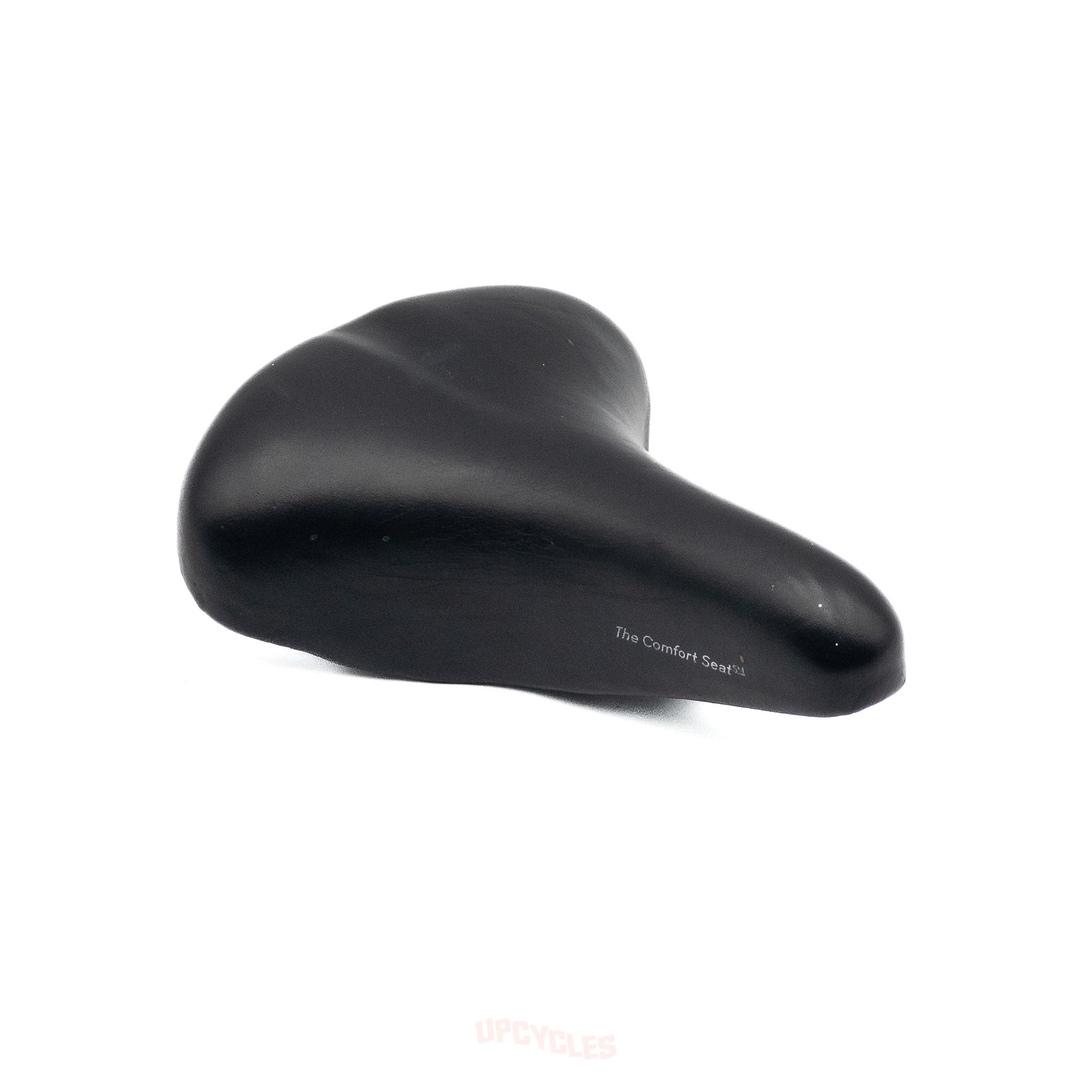 Enhance your ride with Selle Royal's The Comfort Seat in black - the perfect blend of Italian craftsmanship and vegan leather. Its classic design from the 70s-80s era guarantees style and comfort, measuring 245mm x 185mm. In good condition.